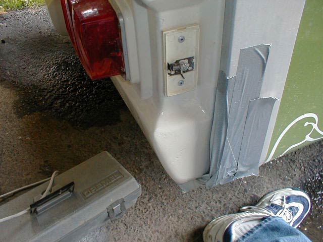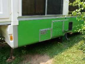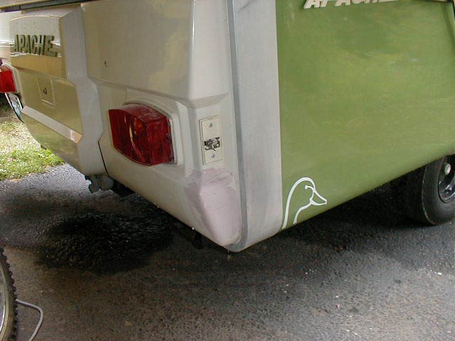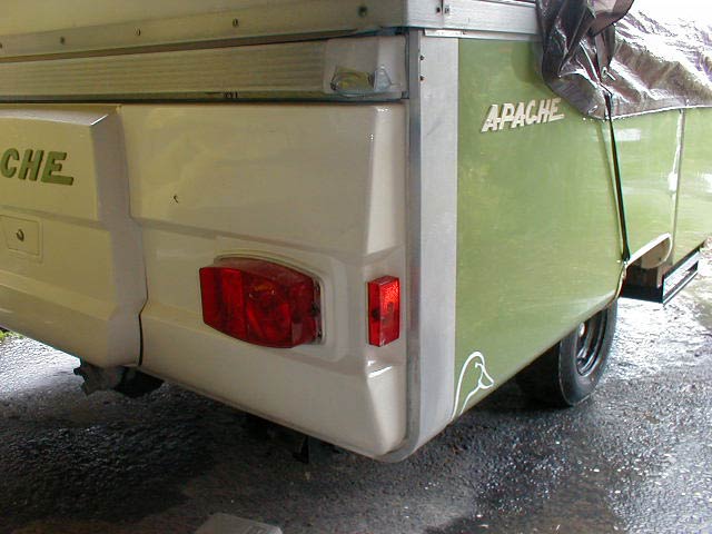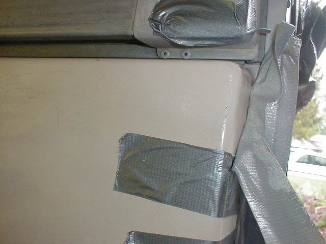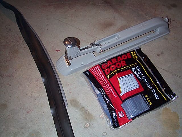 The gray vinyl seal that rests on the bed edge when the Apache is closed, and makes a seal between the bed wing roof and the road cover when the Apache is set-up, was chipped and ripped on my basket case Apache Solid-State Ramada. The vendors still have O.E.M. vinyl with the slip in extrusion lip, but it sells for more than $30 for each end. So I spruced mine up by stapling Macklinburg Duncan (MD) vinyl garage door bottom seal to the existing vinyl. Now I have a good-looking black seal that is double the original thickness. Cost for both ends was about $8. -Gary