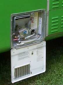 I have had many requests for information and pictures of the shower and hot water heater that I installed in our '77 Ramada two years ago. I wanted to retain all of the original features in the camper and so I opted for the following: