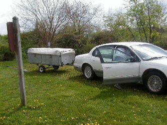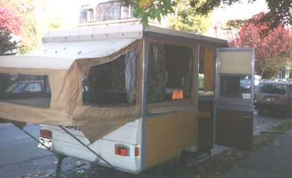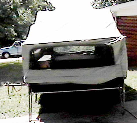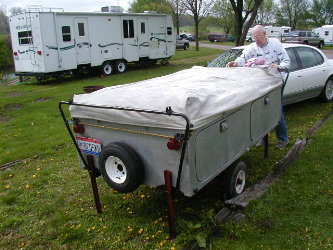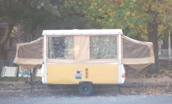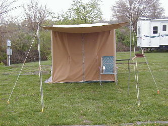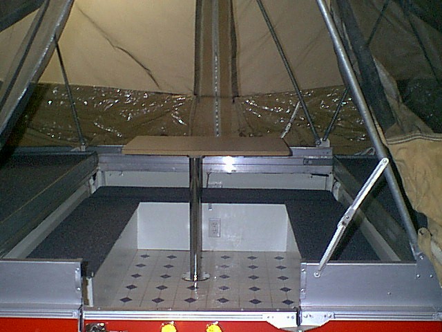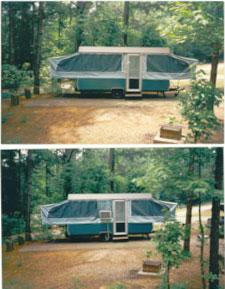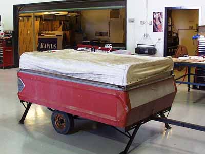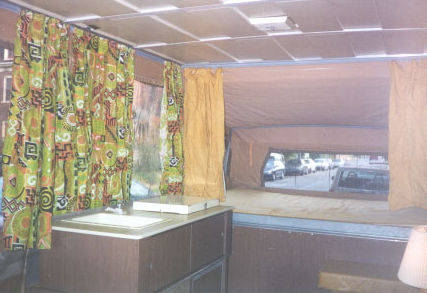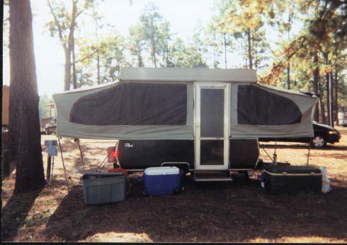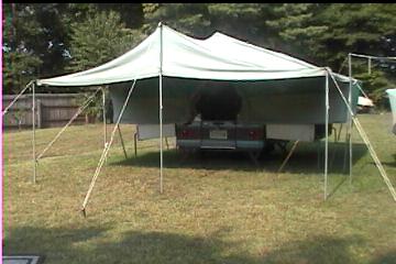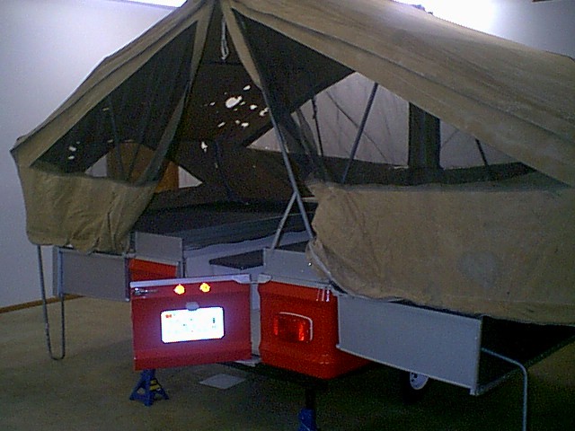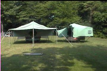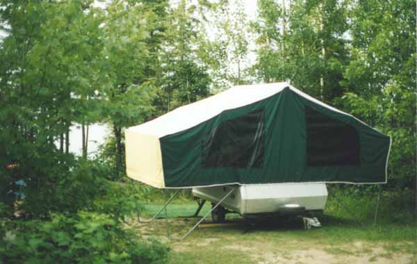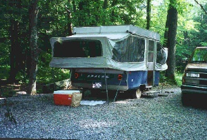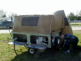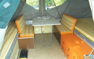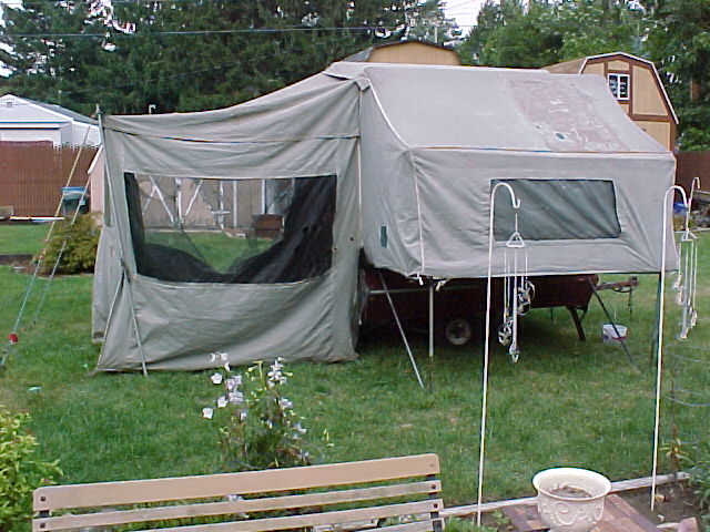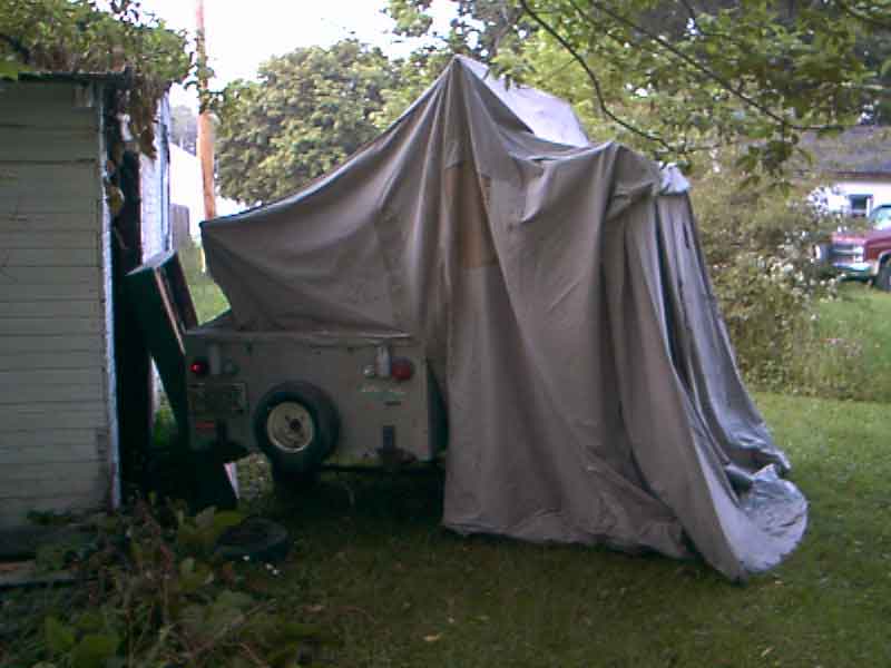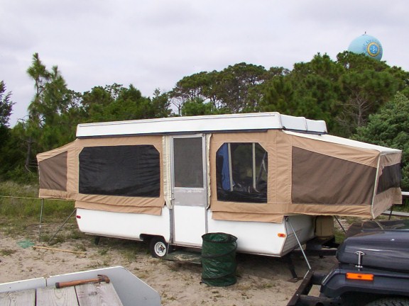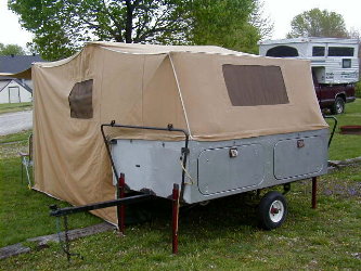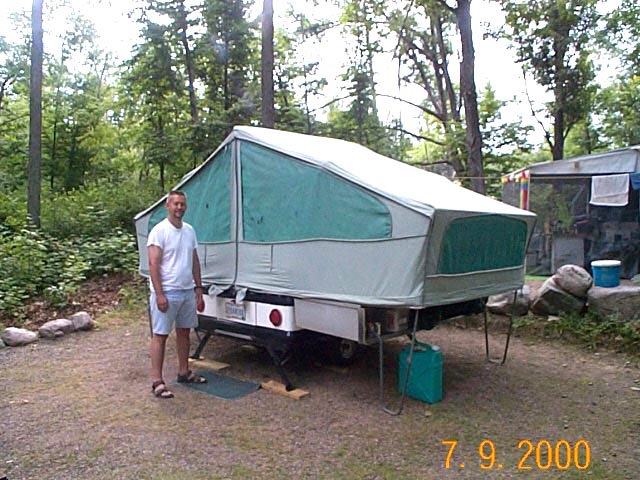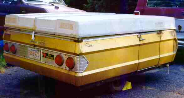 I have a 28 foot '72 Sycamore in nice shape and like to camp and like most campers I have a seasonal site at a campground and from time to time I take off and make little trips and toting my big camper around is ok but I was looking to get a popup for my little trips here & there. My father in-law and I were on our way to MIS for the NASCAR races which we make into a weekend and he saw this popup for sale for $175.00. I missed it for it was on his side and we talked about how much better it would be then in the tent we camp in.