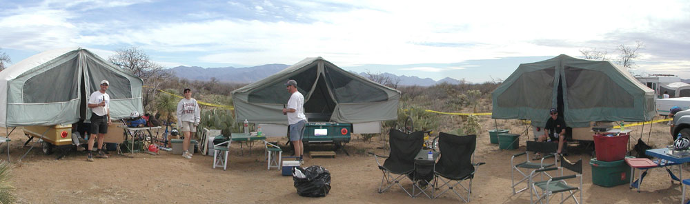 Here is a cool shot of three canvas Apache's. On the left is a '66 Raven that belongs to Todd Brown. In the middle is John O'Neal and his '69 Eagle. On the right is Jim Ridge and his '63 Eagle. They are all GREAT off road campers. We all took our Apache's to a 24 hour Mountain Bike race outside of Tucson AZ. It was the first of many camping trips that these pop-ups will see together. -Todd