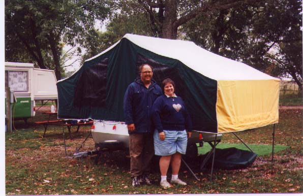 The weather was cool but nice. The fire pit was in the middle of our circle and it sure was good to have a nice warm fire on those cool starry nights. The autumn colors were gorgeous at Starved Rock State Park. We had a little drizzle one morning and, as usually occurs, we had to break camp in a good steady rain on Sunday. Irene and Robert enlightened us with a nice technique for breaking down in the rain: Lift the stabilizer feet while the camper is still up, then crank the lift up a ways to drain the water off the roof. Take a long-handled squeegee (they used an extension handle) and while the end is lowered, squeegee the water and leaves off the bed end! Reverse this and drop the front a ways to remove the rest of the water and squeegee the other roof end. Voila! When you fold the ends in, there's only a little water to towel off for a nice dry closing. Thank you Robert and Irene!!!