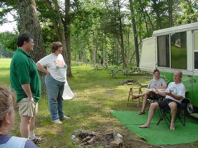 Hi everyone, I have had to thaw out a bit before I could get this out. The East Coast October Roundup at Deer Run was great! We had 5 Apache campers and one...uh... non-Apache there. Dave and Theresa and their two boys were there from Canada. It was only a 7 hour trip for them! Dennis and Jane joined us from NY. Ken and Jane with their two boys joined us from NY. Pete and his family were there with a couple of his friends from NY. A couple that didn't know anything about the get together, Andy and Louise and their boys, were there on the other side of the campground. And of course, Val and I were there too. Two couples from NH couldn't make it due to snow!
