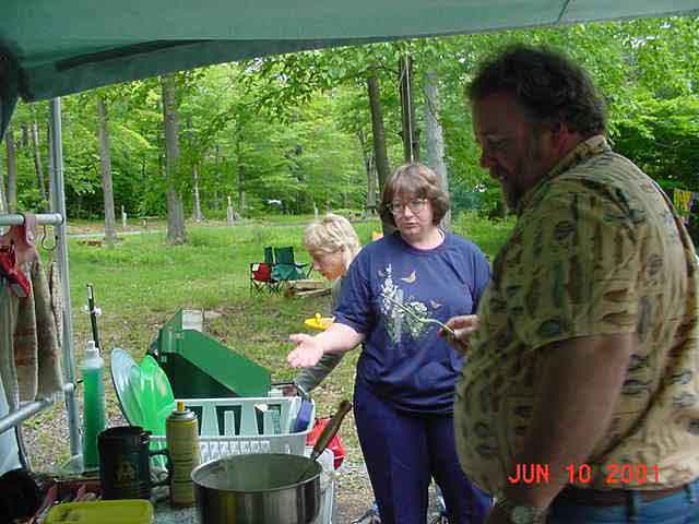 The weekend started off the usual way. Everyone getting set up and introductions to each other. We spent the evening sitting around the campfire and swapping stories and information. Saturday afternoon we all started to regroup for the pot luck dinner. Everyone brought something different for all to share. Again, more food than people to eat it! Many nice conversations around the dinner tables then off to another campfire until midnight. Paul was entertaining the group with some elaborate campground stories. You wouldn't believe the quantity of smoores that were consumed. Sunday morning we started the day with a pancake and Spam breakfast for everyone. Plus some morning campfire smoke to finish the wood pile. Lots of good byes and it sounded like everyone enjoyed the weekend as much as Val and I did. (just as a note...Rich reminded me that I had said that I wasn't going to organize another Roundup at the end of the first one in 1999. I guess I forgot....or lied. Either way, it has been fun.)