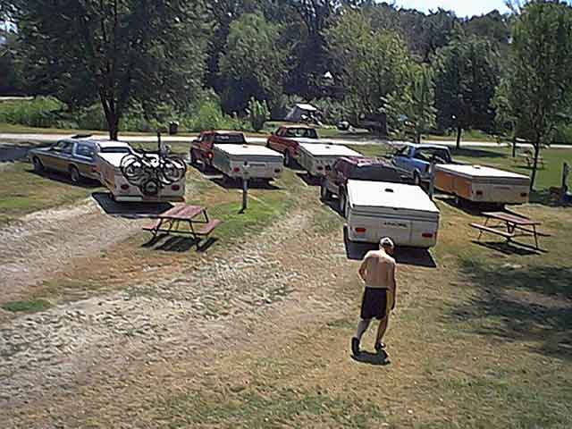 The third annual Midwest Apache Roundup (2001) was held at the KOA in Utica, Illinois, just outside of Starved Rock State Park. This is the same location that the 1st Midwest Apache Roundup was held at in 1999. What a great time! What great folks! Beautiful weather accompanied 7 Apaches, folks all the way from Texas & Wisconsin, a couple dogs and a cat (!), hiking, swimming, Perseid meteor shower, and a belly-busting potluck dinner followed by a late-night lip-smacking pudgie-pie bake-off!! Thanks to everyone who showed up - you are all true Apache friends! I'm hoping to get some more pictures successfully emailed to me (Anyone?? Buehler??...) In the mean time, here are the pictures I've received so far!